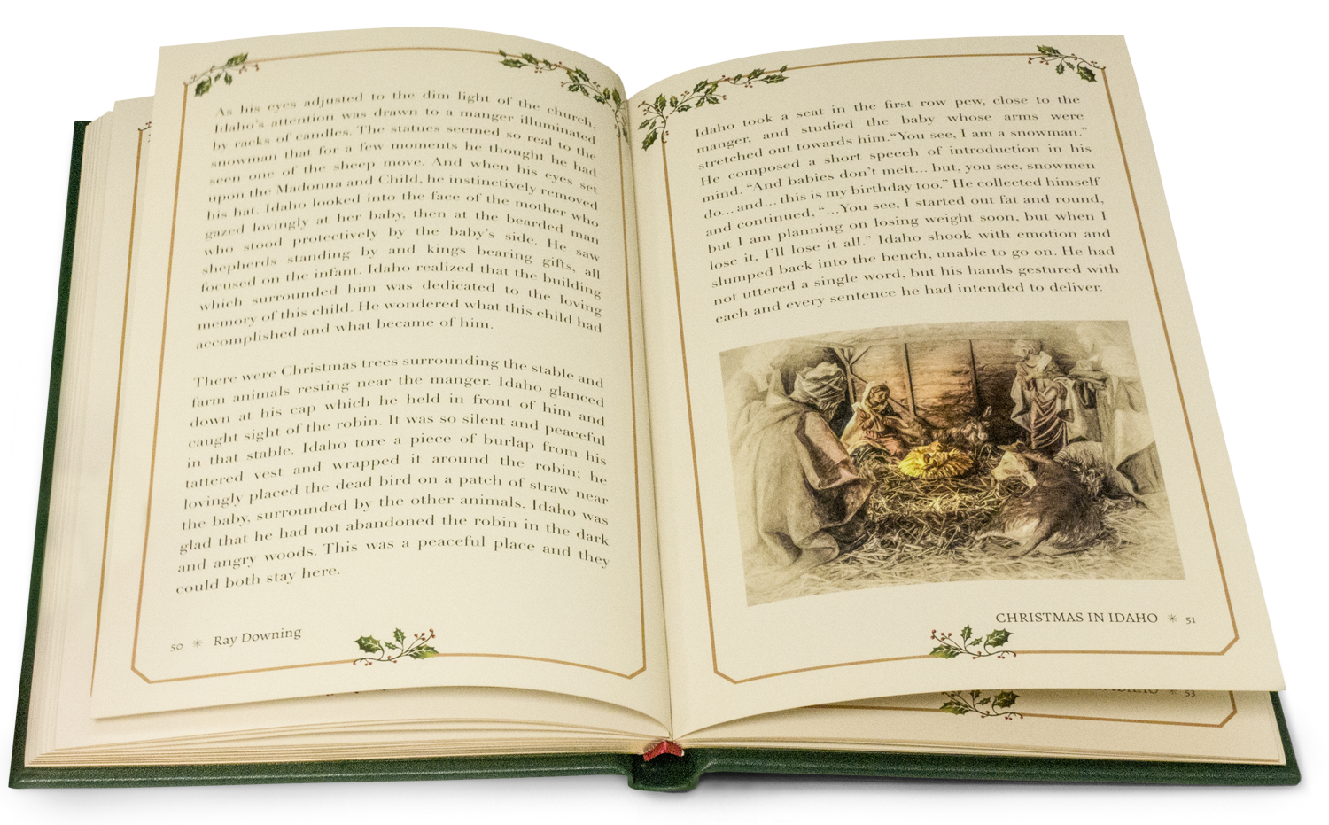 Keepsake Book with audio CDChristmas in Idaho “ To Never Melt ” The perfect Christmas book Shop 2022 Award Winner Peek inside Slide 1 Slide 1 (current slide) Slide 2 Slide 2 (current slide) Slide 3 Slide 3 (current slide) Slide 4 Slide 4 (current slide) Slide 5 Slide 5 (current slide) Slide 6 Slide 6 (current slide) Slide 7 Slide 7 (current slide) Slide 8 Slide 8 (current slide) Slide 9 Slide 9 (current slide) Shop Meet the author Emmy winner and creator of the Real Face of Jesus for the History Channel, digital artist Ray Downing has written and illustrated this unforgettable Christmas story.